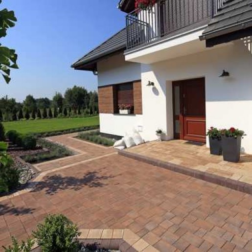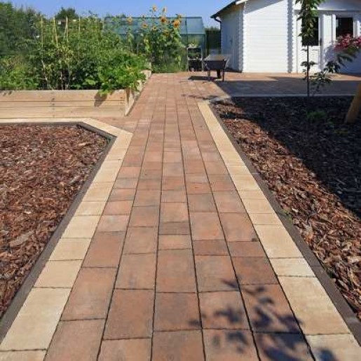 За счет большого количества элементов, тротуарная плитка Гранито создаёт гармоничную целостность. Красиво смотрится как на узких дорожках, так и на больших площадях. Отлично подходит для окантовки основного мощения.