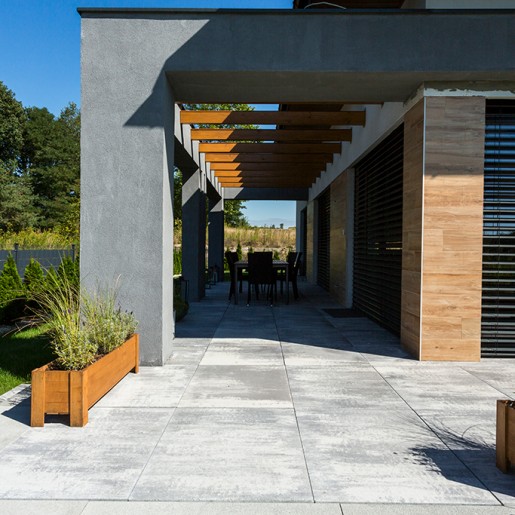 Авангардная и вместе с тем минималистская - доступная в большом формате тротуарная плита Магна - является совершенным оформлением террас современных зданий, городских пассажей, тротуаров метрополий.